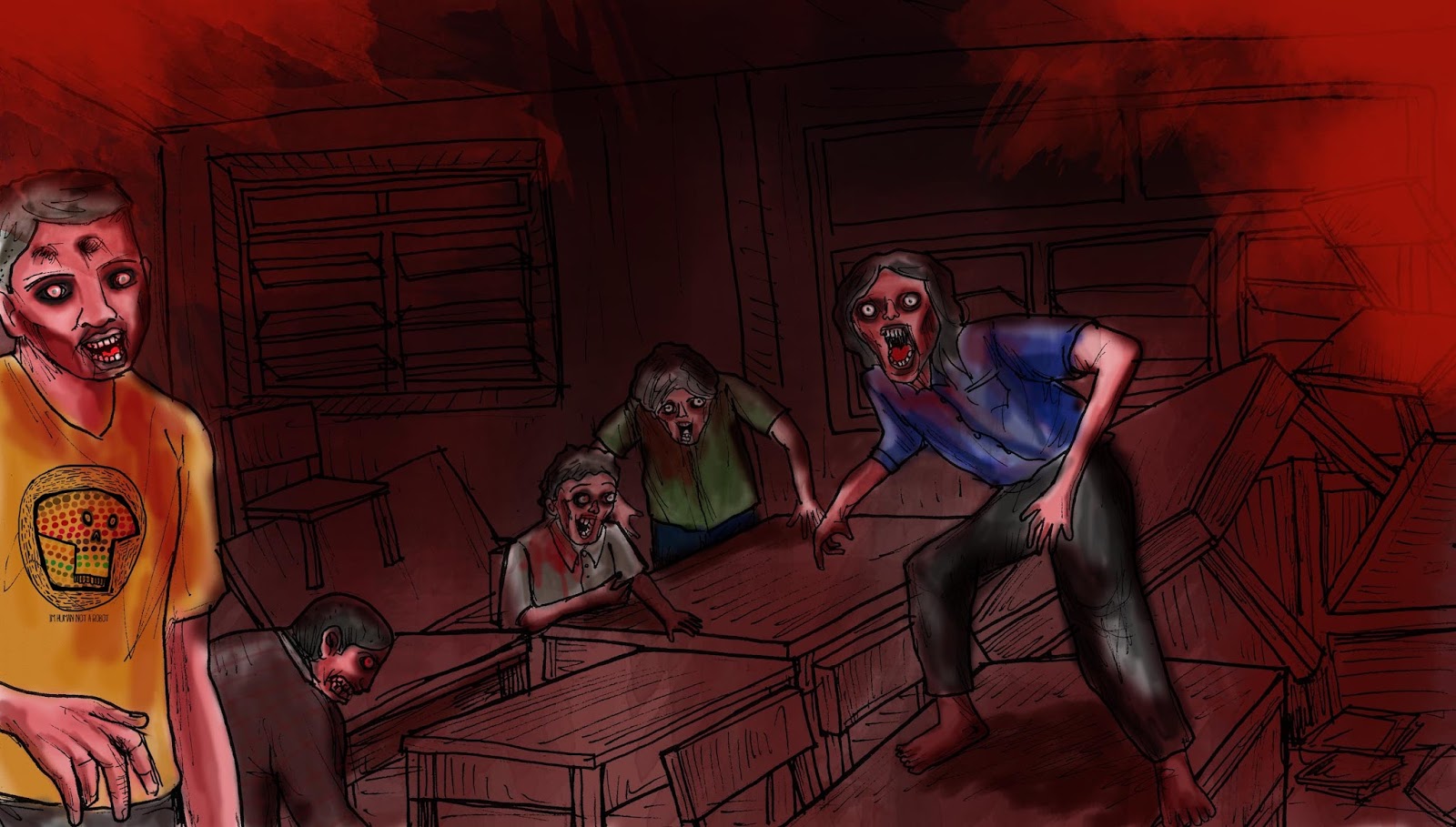 illustrasi yang saya buat ini bercerita tentang zombie zombie yang sedang berkeliaran di suatu sekolah , ide konsep ini berdasarkan sebuah film dari school of the dead ( sebuah movie series at video.com ) , illustrasi ini nantinya akan dijadikan opening title dalam film school of the dead , project ini bekerjasama dengan studio 8 mm